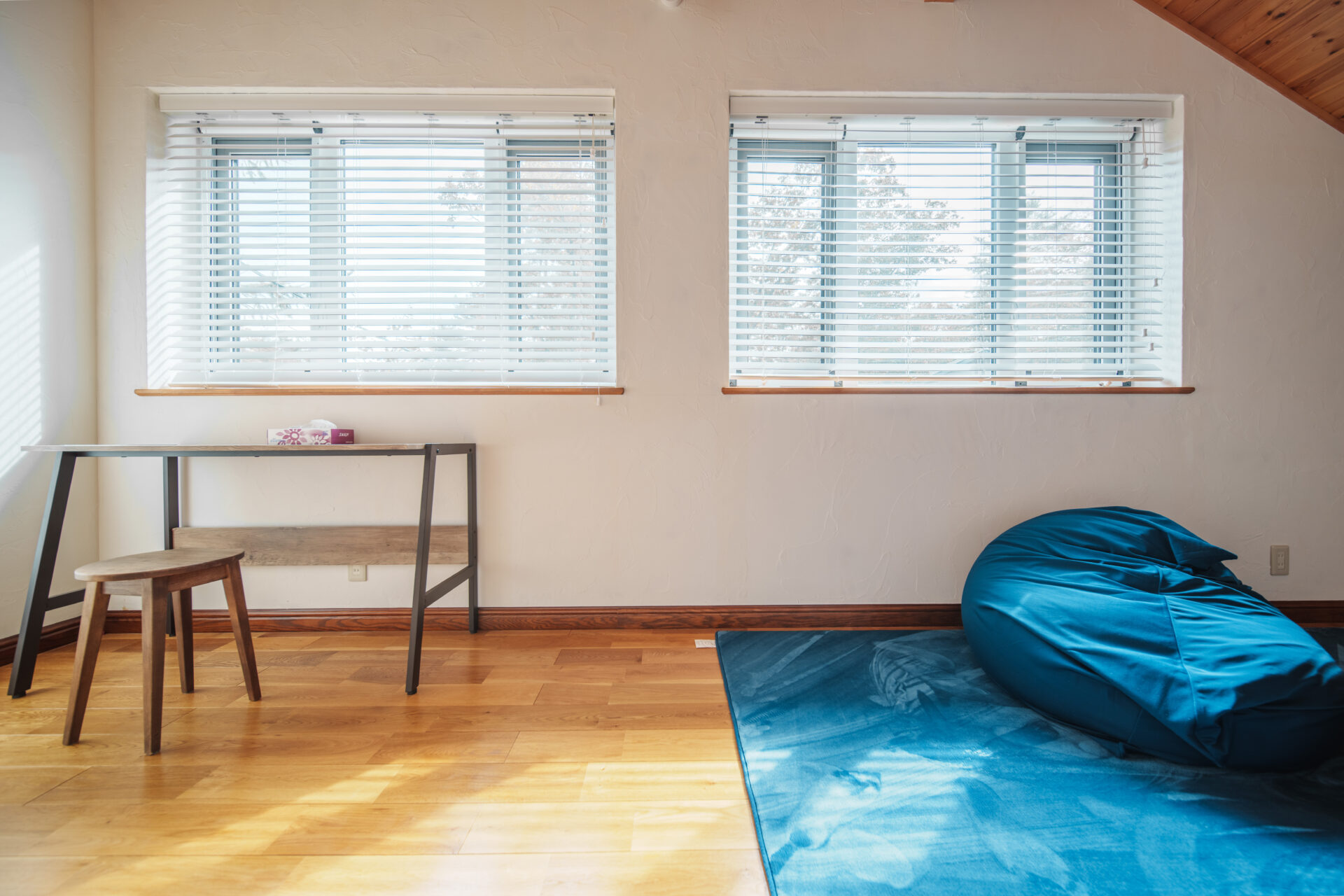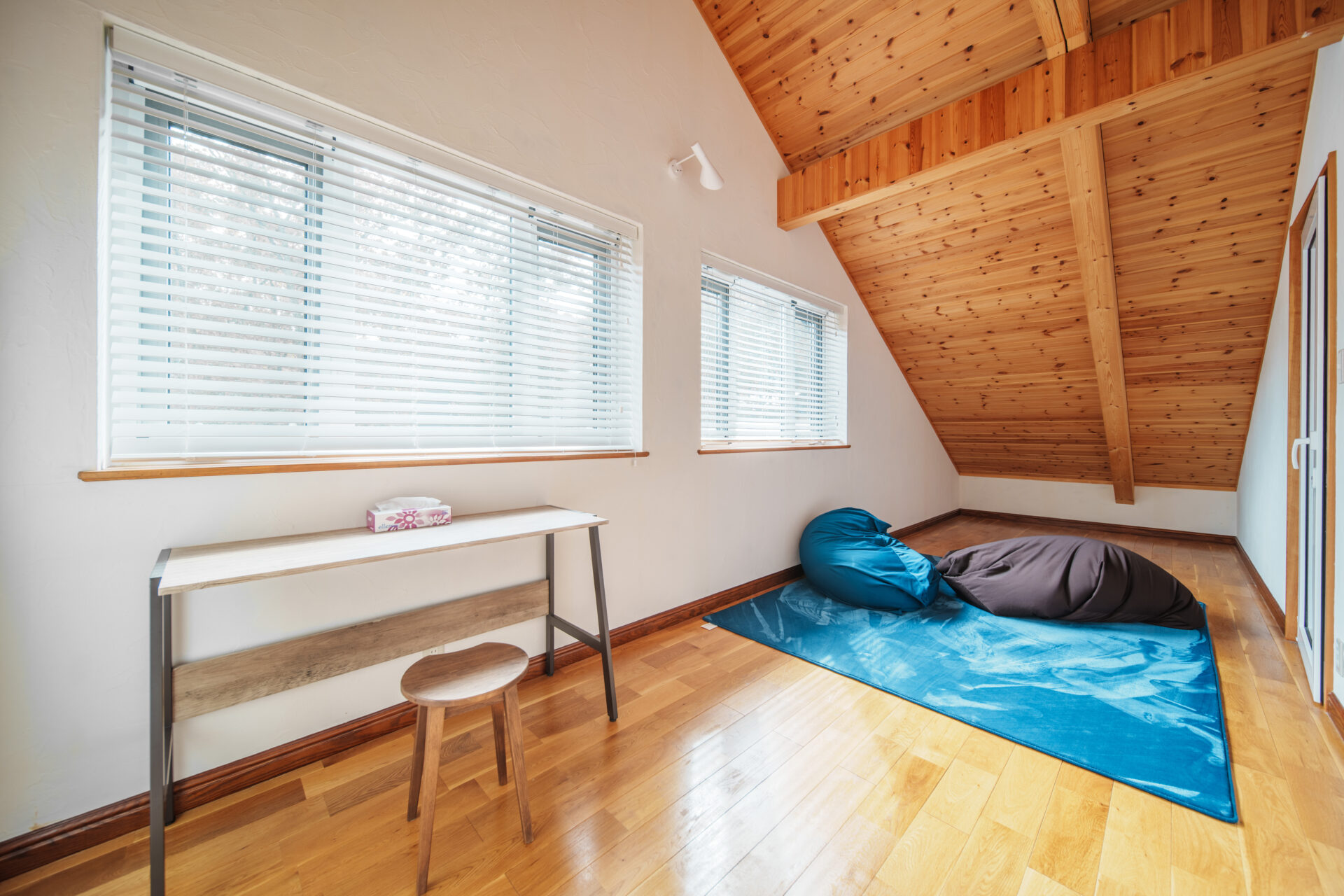 2階の奥には、ヨガを楽しんだり、お仕事や勉強もできるデスクが整った広々としたマルチスペースもあります。