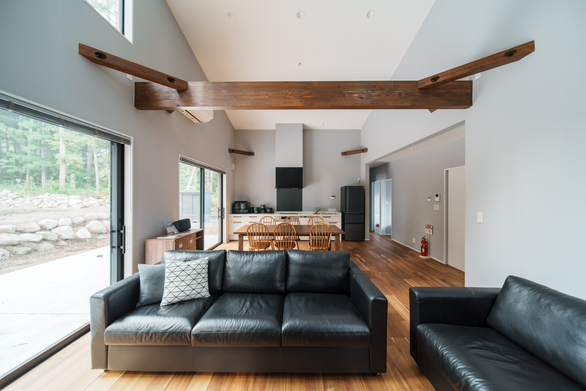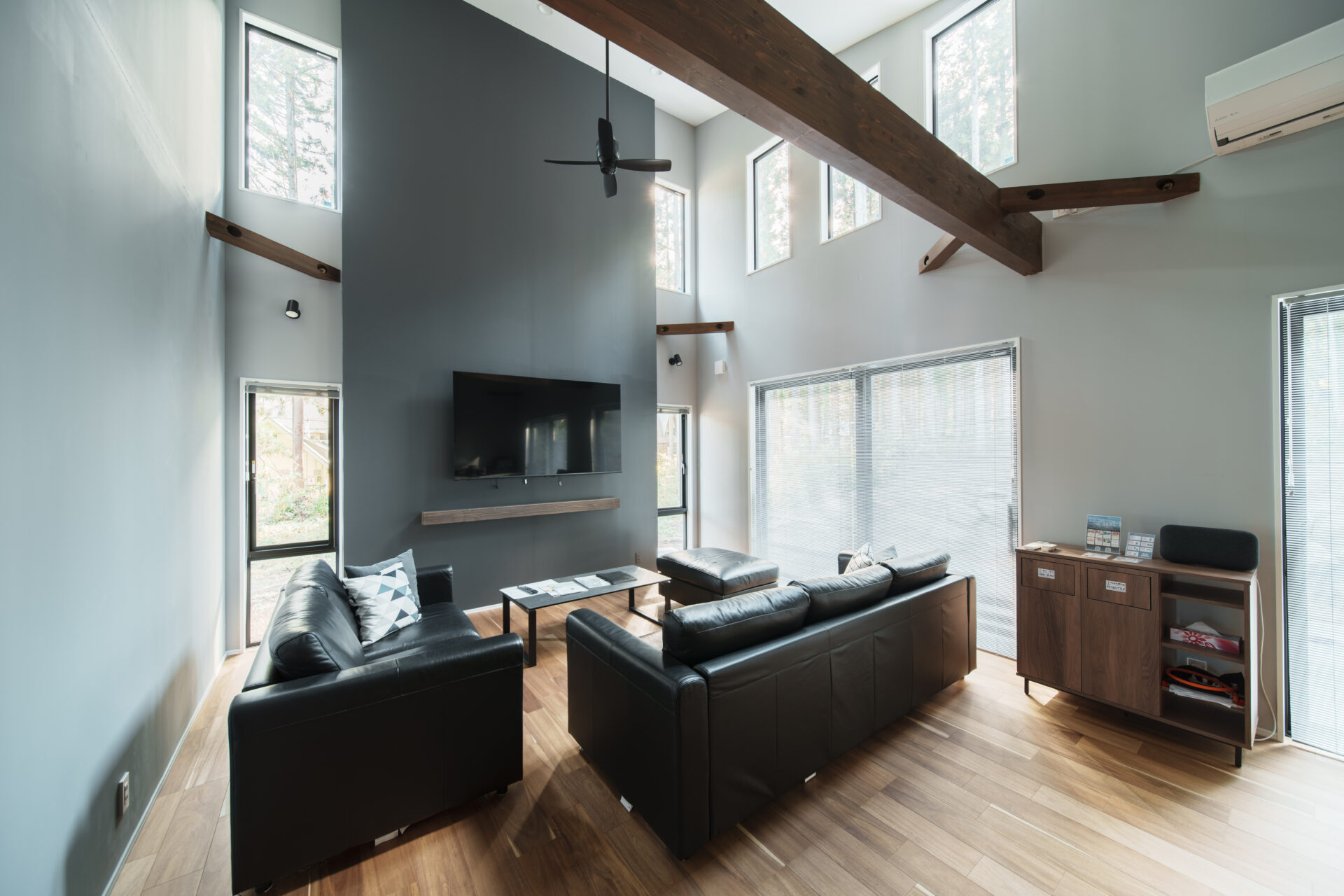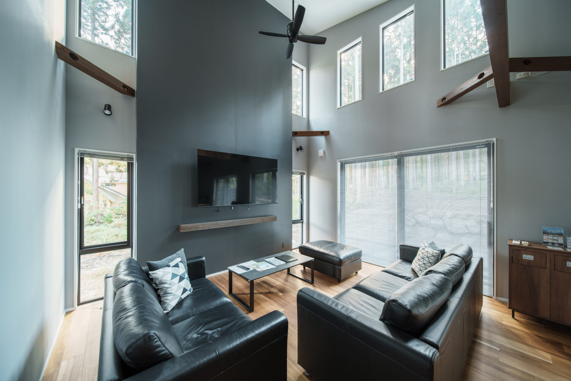リビングルームスペースには床暖房もございます!ウィンタースポーツ満喫後、75インチの薄型スマートテレビで映画を見ながら、大きなソファーでごゆっくり、暖かくお楽しみください!