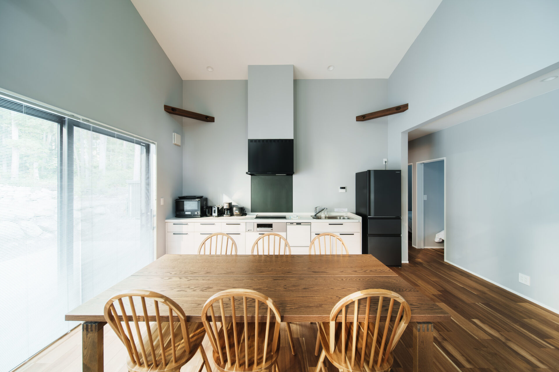 モダンで広々としたリビング・ダイニング、食洗機・電子レンジ・調理器具・食器類等の必要なものが全て揃った快適なキッチン、洗面所・最新の全自動洗濯乾燥機を完備したランドリースペース・お風呂・トイレが使いやすくまとまったバスルーム、寝室が3部屋とトイレがもう1つあり、6名様でご宿泊いただけます。