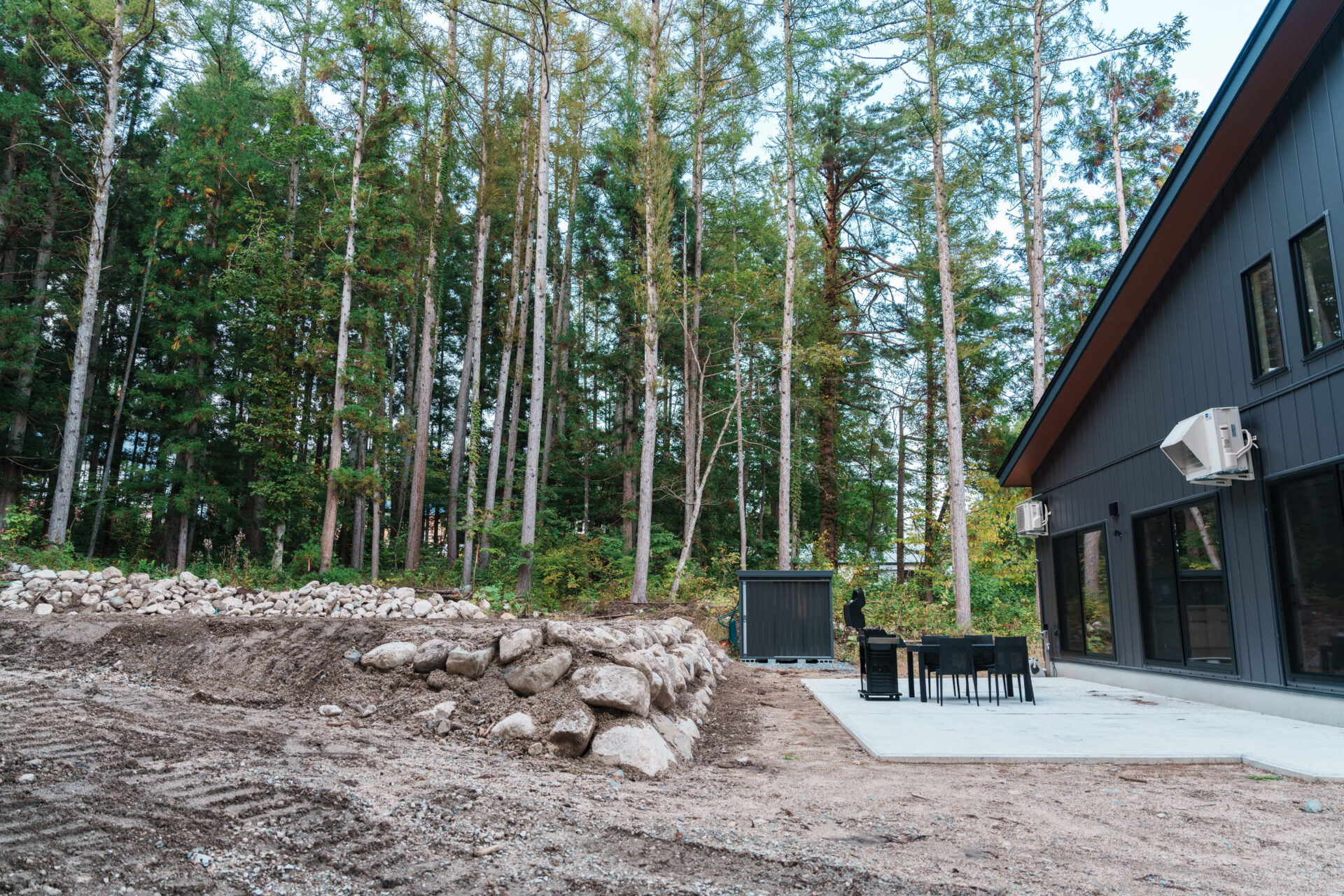 広々とした裏庭/森全体が本別荘の私有地となるため、美しい景色を大きな窓からお楽しみいただけるのはもちろん、夏も冬も大自然を満喫していただけます。
