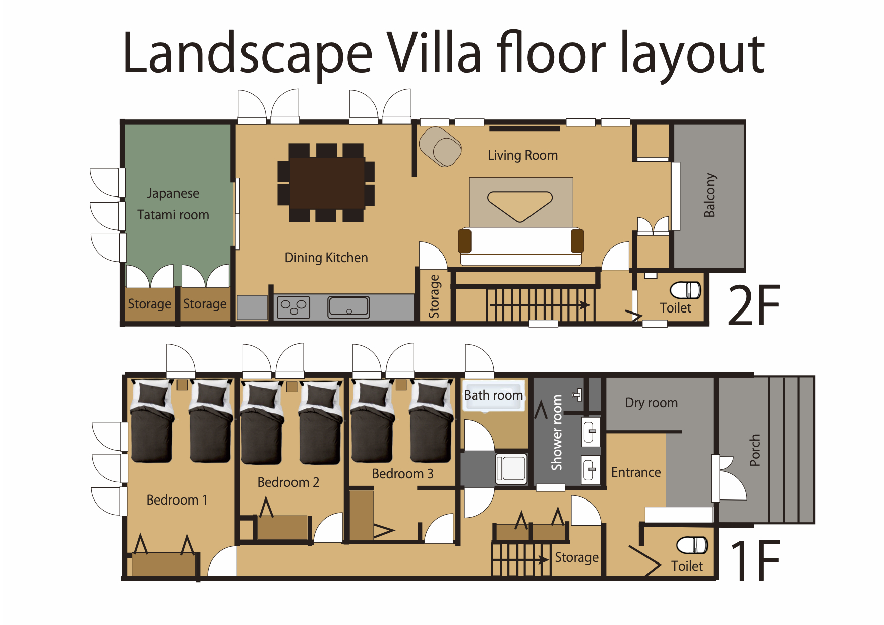 (We can add two more futons in the Japanese tatami room, and one more in one of the bedrooms to accommodate upto 11 guests at maximum. Please inquire.)